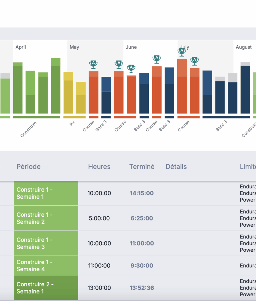 Nous t’accompagnons avec une planification d’entraînement sur mesure, adaptée à ton niveau, tes objectifs et ton emploi du temps.